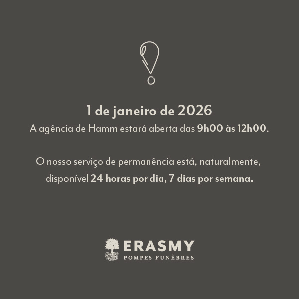 A Erasmy Pompes-Funèbres oferece alívio, segurança e apoio. “Os nossos colaboradores qualificados aconselham-no(a) individualmente e intervêm no sentido de organizar exéquias e uma cerimónia dignas que respondam aos desejos e às exigências do cliente.”
